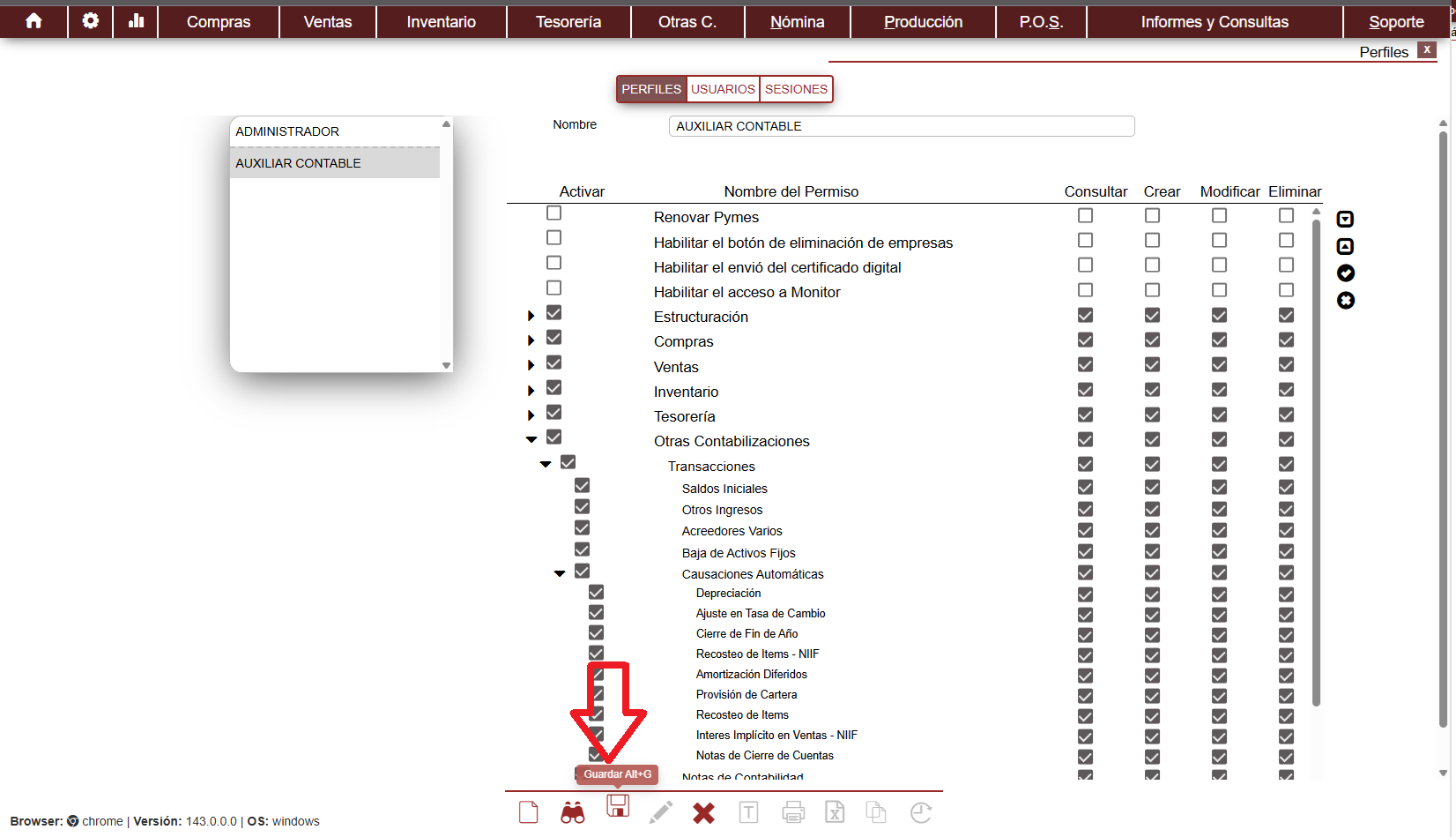 ✅Una vez asignes los permisos, presiona clic en "guardar":